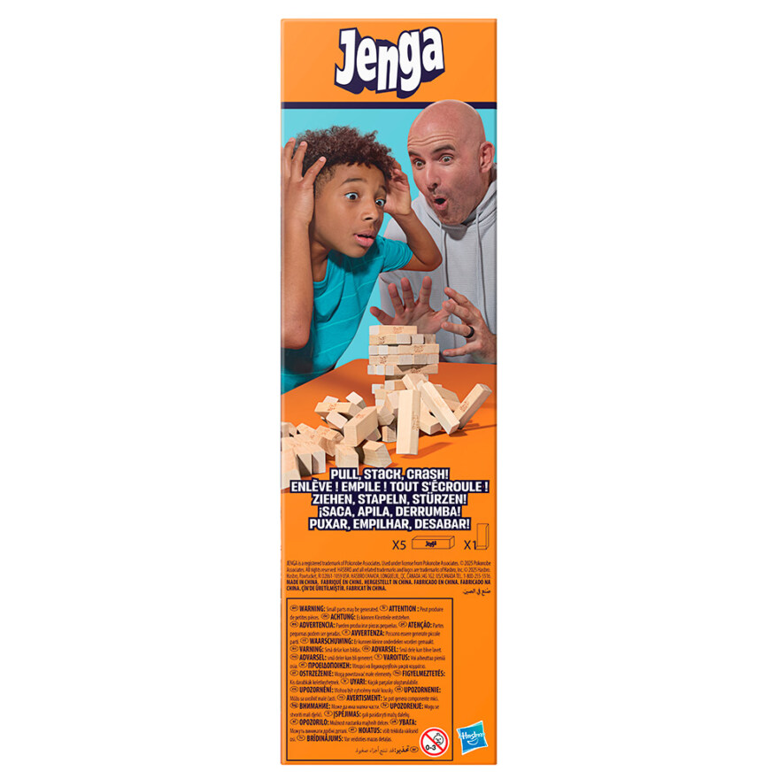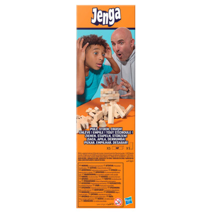 Den klassiske Jenga‑spenningen er tilbake – nå med en digital vri som gjør spillet enda mer utfordrende og morsomt. Spillerne trekker klosser fra tårnet og stabler dem på toppen uten å velte hele konstruksjonen. Den digitale terningen introduserer seks ulike utfordringer som varierer vanskelighetsgraden og gjør hver runde mer uforutsigbar og spennende. Treklossene og stabelhylsen gjør det enkelt å sette opp og oppbevare spillet mellom hver omgang.