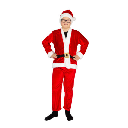 Juleantrekk til gutt med nissefrakk, bukse, lue og belte. Perfekt til utkledning og alle julens sammenkomster.