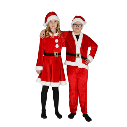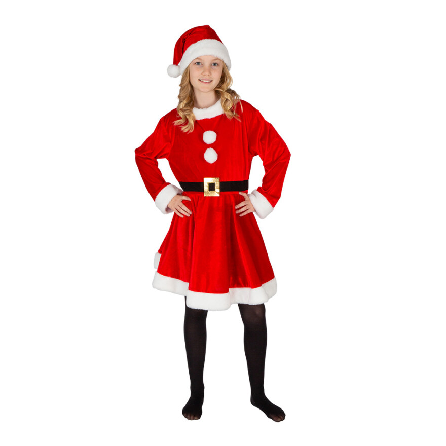 Juleantrekk til jente med nissekjole og lue. Perfekt til utkledning og alle julens sammenkomster.