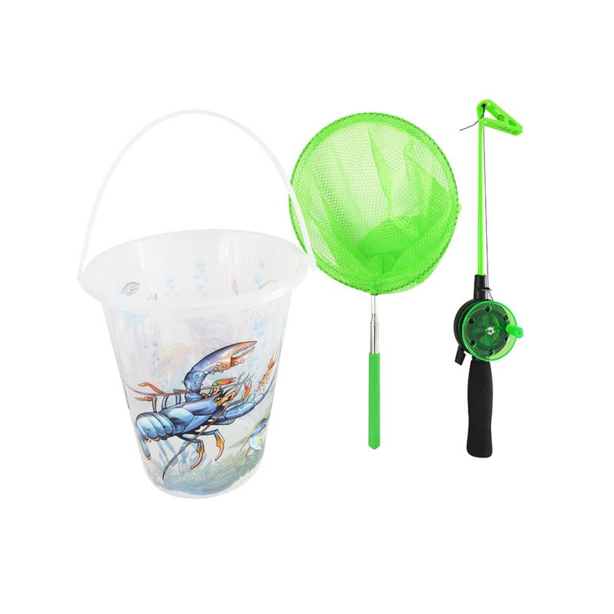 Krabbefiskesett - Inneholder bøtte for fangsten, teleskopgarn og krabbefiskestang.