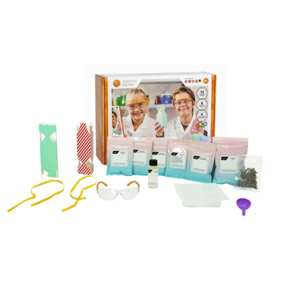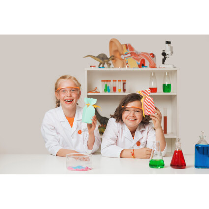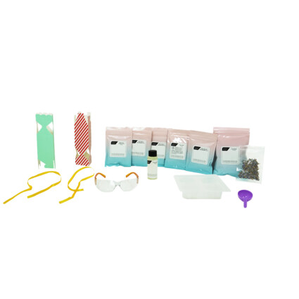• ekte forskerutstyr som måleskjeer, støpeformer og vernebriller for trygg eksperimentering.