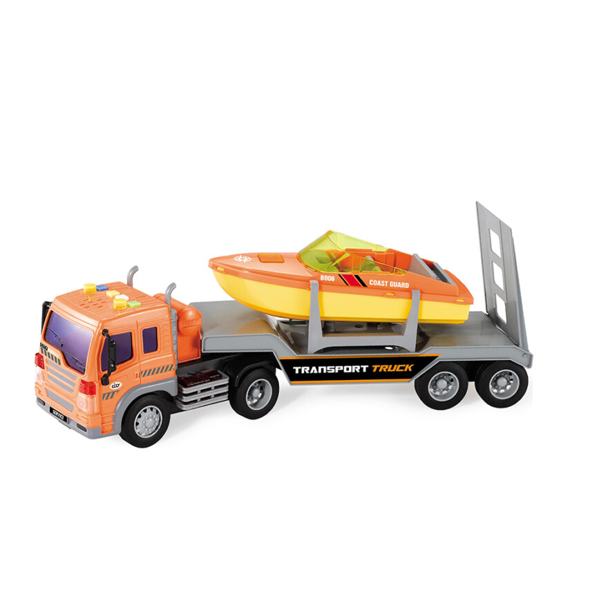 Gi lekestunden et løft med Transporter med båt – en solid og stor leke som kombinerer transportglede med actionfylt båtlek! Denne robuste transporteren er designet for barn som elsker å flytte kjøretøy, lastegods og ta med seg båten på eventyr – enten det er i sandkassen, på gulvet hjemme eller ute i hagen.
