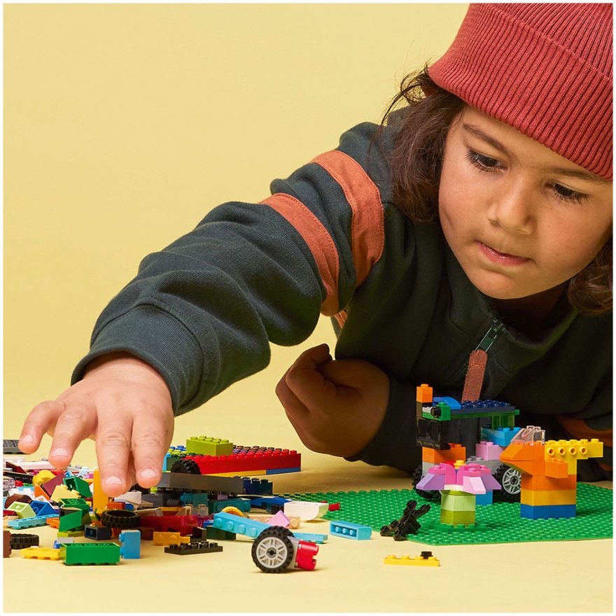 Denne grønne basisplaten med 32 x 32 knotter byr på utallige leke- og byggemuligheter. Den kan omskapes til alt fra grønne hager og skoger til fremmede planeter. Den gir et solid fundament som barn kan bygge hva som helst på. Og når byggingen er over, kan barn frakte og stille ut modellene sine uten å være redd for at de skal gå i stykker.