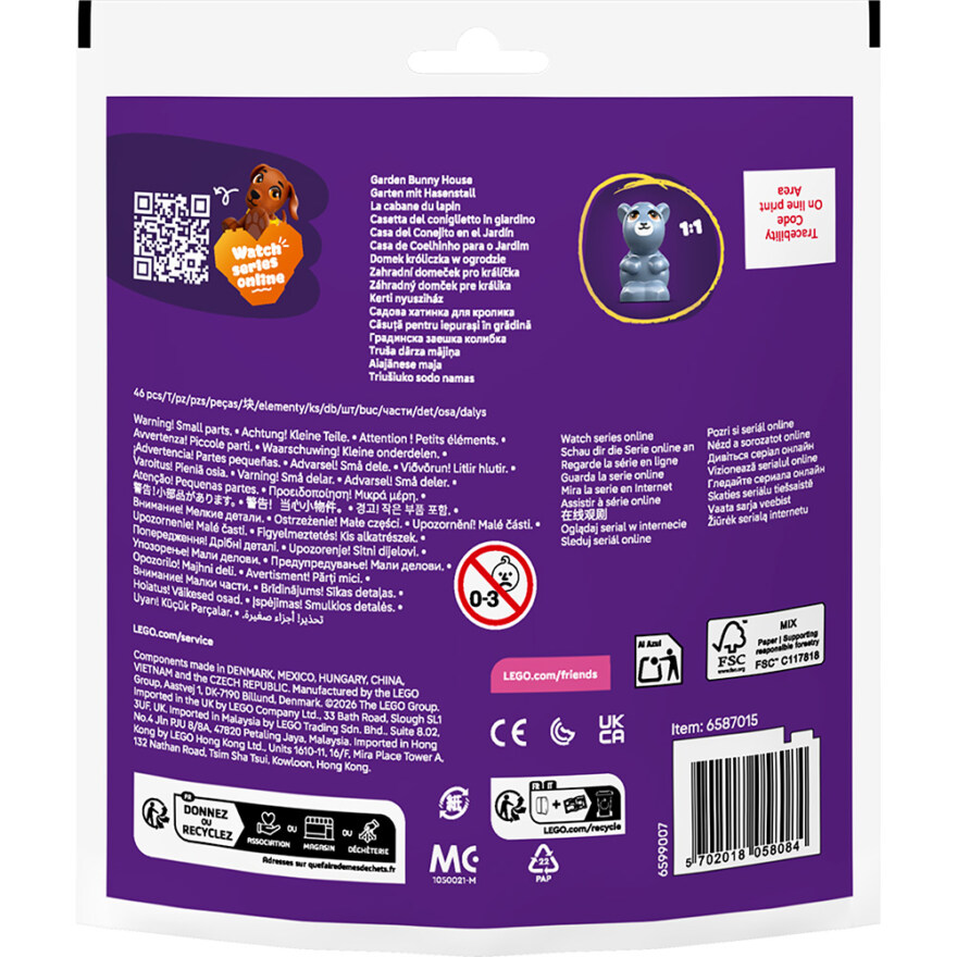Dette LEGO® Friends-settet gir barn fra 5 år muligheten til å skape morsomme og fantasifulle historier sammen med Paisley og hennes kanin Melody. Med et søtt kaninhus, en minidukke og tilbehør kan barn utforske kreativ lek og ta vare på sitt lille kjæledyr. Settet inspirerer til rollelek og gir en flott introduksjon til dyreomsorg og hagelek.