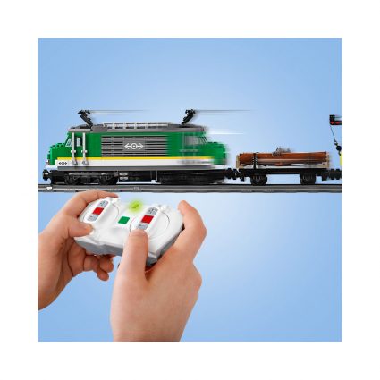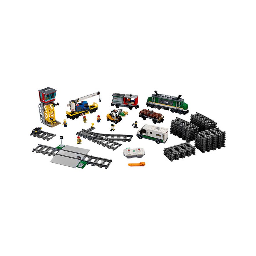 Gjør klar LEGO® City 60198 Godstog, og få fart på godstransporten! Bruk gaffeltrucken for å fylle containerne før du løfter dem opp på godsvognen med kranen. Hekt på alle vognene, klatre om bord i førerhuset, tut med fløyten og rull av gårde! Få lasten fram i tide, og sørg for å holde hjulene i gang i LEGO City!