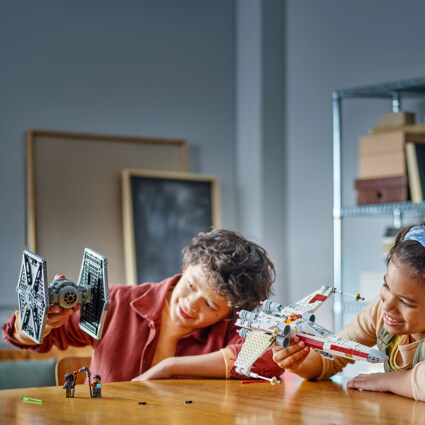 - Få to byggbare stjernejagere med settet LEGO® Star Wars™ Kombimodell med TIE Fighter og X-Wing