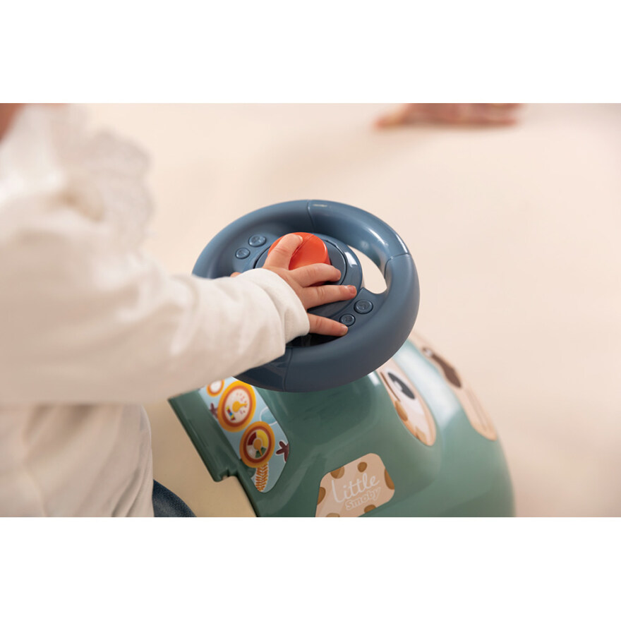 La de første skrittene bli starten på store eventyr med Little Smoby lære-gå-vogn! Denne lette og stabile gåbilen er perfekt for små oppdagere fra 10 måneder. Med et sklisikkert ratt, lav sittehøyde og ryggstøtte som gir ekstra støtte ved gåtrening, kombinerer den trygghet og moro. Den robuste konstruksjonen gjør den egnet til både inne- og utelek, og med et praktisk oppbevaringsrom under setet kan favorittlekene bli med på tur. Tippsikring foran og bak gir ekstra stabilitet for små barn i bevegelse.