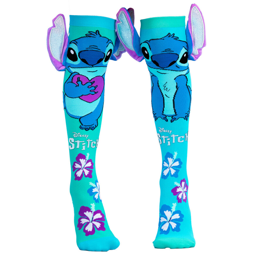 Disse fargerike MADMIA‑sokkene kombinerer den populære Stitch‑figuren med en skimrende sølvfinish som gir antrekket et lekent og eventyrlig uttrykk. Med morsomme 3D‑detaljer og tropisk inspirasjon blir sokkene et fargerikt tilbehør som passer like godt i hverdagen som ved spesielle anledninger.