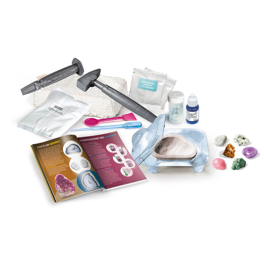 Lag og hakk ut dine egne krystaller og edle stener med dette flotte settet fra Clementoni, inkludert en vitenskapelig håndbok.
