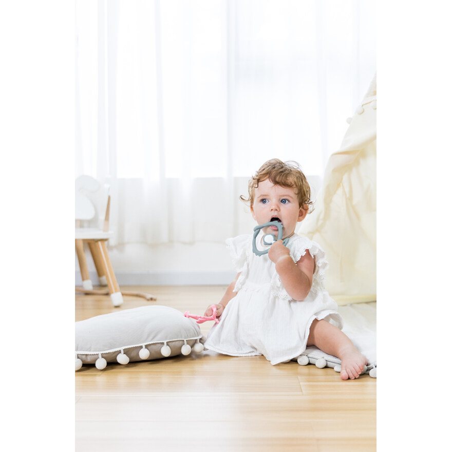 Mombella biteleken består av 100 % matsikker silikon – fri for BPA, PVC og ftalater. Den stimulerer sanser og finmotorikk, og du kan koke, vaske eller fryse den for ekstra lindring under tannfrembrudd.
