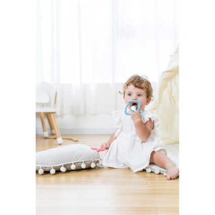 Mombella biteleken består av 100 % matsikker silikon – fri for BPA, PVC og ftalater. Den stimulerer sanser og finmotorikk, og du kan koke, vaske eller fryse den for ekstra lindring under tannfrembrudd.