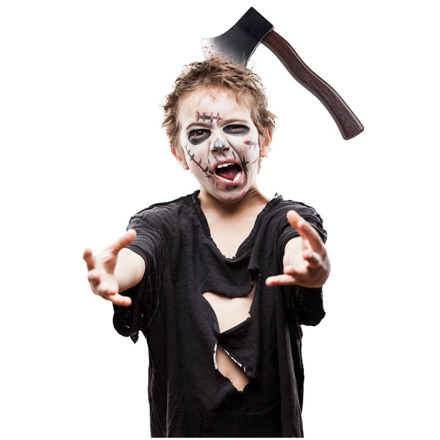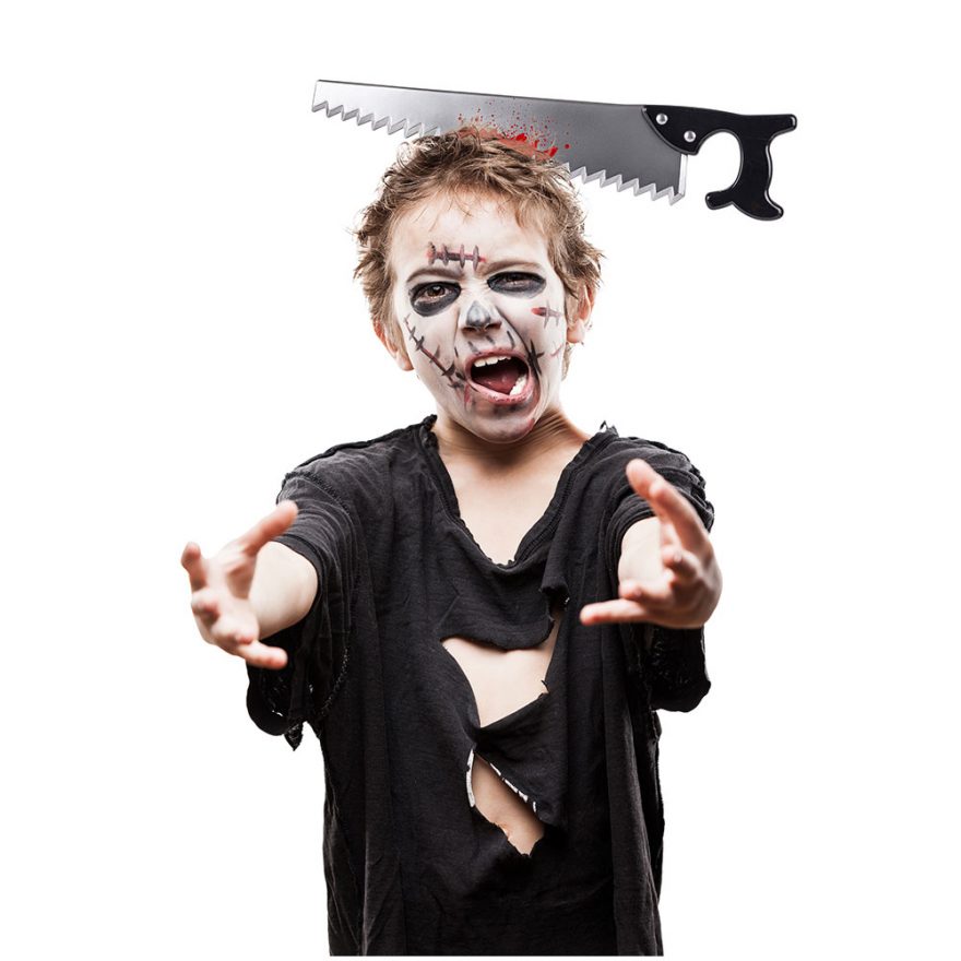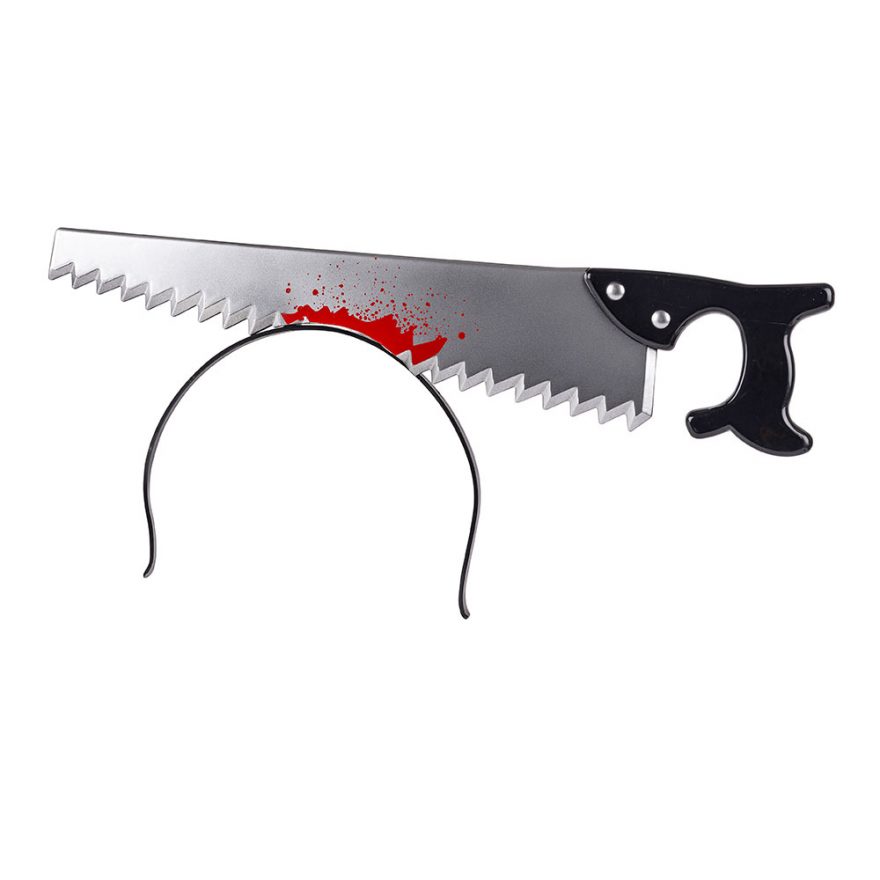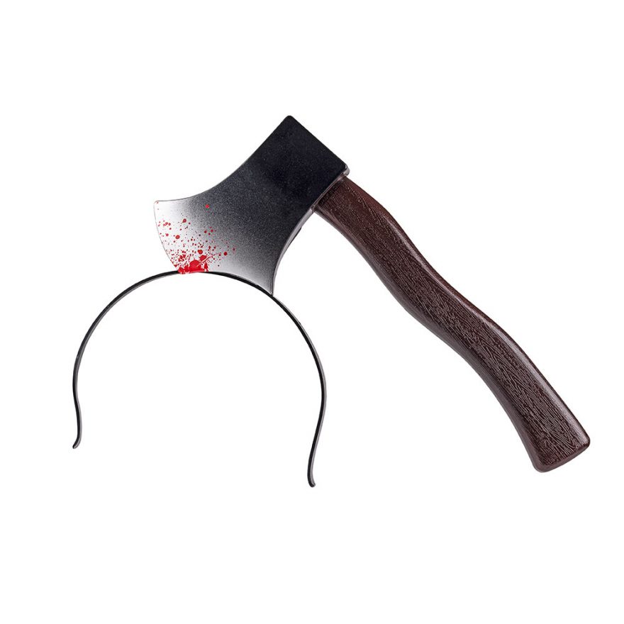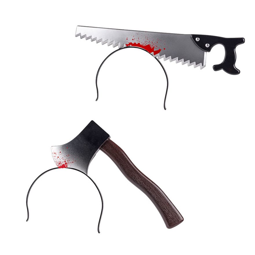 Hodebøyle med øks eller sag med blod. Perfekt til utkledning eller Halloween.