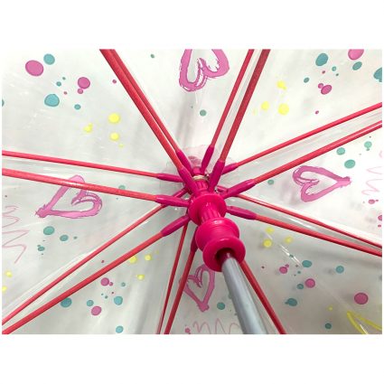 Flott gjennomsiktig paraply med stilig enhjørning-motiv. Paraplyen har et godt grep som gjør den perfekt for små hender.