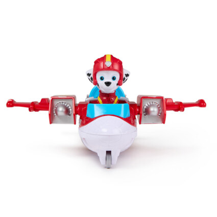 Fly inn i action med Air Rescue Marshall og hans Hero Hydro Plane-leketøy! Når det er tid for en redningsaksjon, plasserer du Marshalls føtter i cockpiten. Lad kanonen med et av de to diskprosjektilene og klem på spaken på flyets hale for å skyte dem. Marshall-figuren er over 5 cm høy og iført sin røde Air Rescue-flyjakke og hjelm.