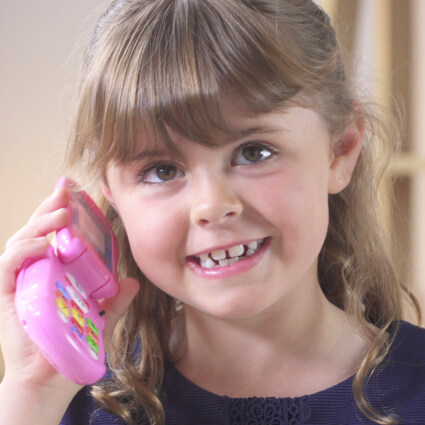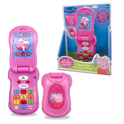 Denne morsomme flip‑telefonen lar barn lære tall, bokstaver og farger sammen med Peppa Gris, og den har fire språk: dansk, svensk, norsk og finsk. Telefonen aktiveres når den åpnes, og den lyser opp som en ekte mobil. Barn kan trykke på de fargerike tastene for å høre Peppa, svare på hennes quiz og leke at de tar bilder med kameraknappen. Perfekt for tidlig læring gjennom lek.