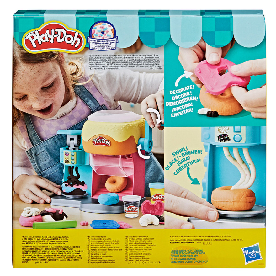 Dette kreative Play‑Doh‑settet lar barn lage og dekorere fantasifulle donuts ved hjelp av en innebygd donutmaskin og masse morsomt tilbehør. Donutformen har tre ulike fasonger – fancy, fylt og klassisk – og når barna vrir på håndtaket, popper donutsene opp og faller ned på basen, klare for dekorering. Med glasurmaskin, stempel, strøssel og ekstra former kan barna lage unike kreasjoner igjen og igjen. Settet inkluderer også mulighet for å lage tullete croissanter eller små fantasidrikker for enda mer lekeinspirasjon.