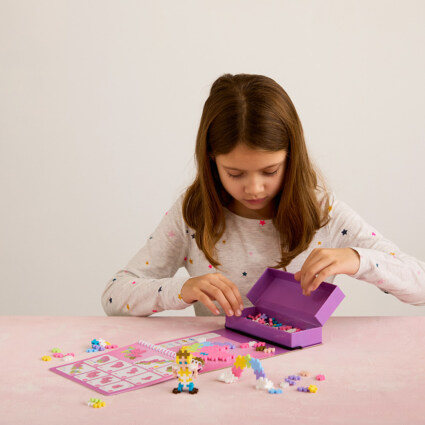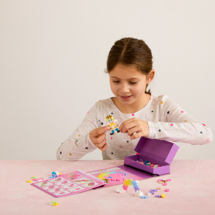 Gå inn i en fantasiverden med Plus-Plus Eventyr Activity Pad! Dette alt-i-ett-settet inneholder 12 engasjerende aktiviteter og 125 biter, perfekt for å skape både 2D- og 3D-scener med enhjørninger, regnbuer og mye mer. Ideelt for både hjemmelek og eventyr på reisen, gir dette settet uendelige muligheter for kreativ utfoldelse.