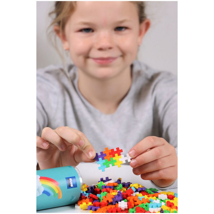 Dette Plus-Plus produktet leveres i et rør som er perfekt når man skal reise og som kan brukes til oppbevaring av dine Plus-Plus brikker. Denne regnbue- fargemiksen inneholder 100 Plus - Plus brikker.