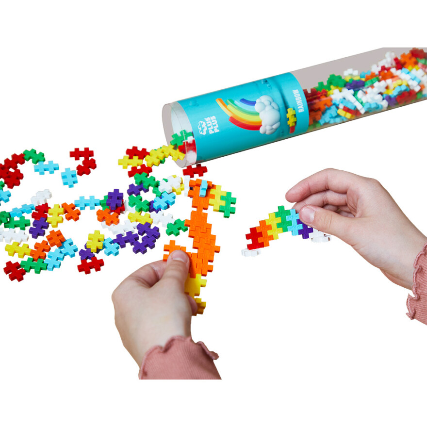 Plus-Plus kommer i en verden av farger, og Rainbow Colormix er intet unntak. I røret finner du rød, oransje, gul, hvit, eplegrønn, turkis og lilla. Fargemiksen har ikke et forhåndsbestemt tema for hva du kan bygge – den oppmuntrer til fri lek slik at du enkelt kan skape det som faller deg inn. Med Plus-Plus bestemmer du selv hvordan du vil leke.