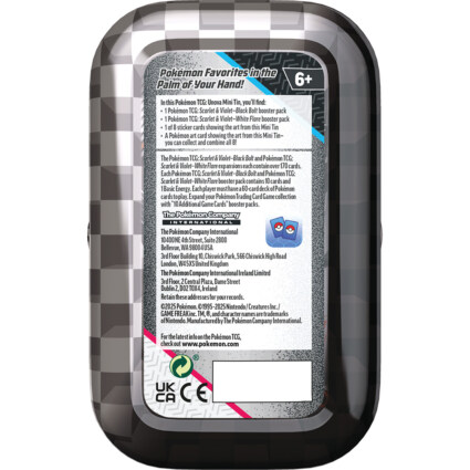 Hver Mini Tin inneholder to boosterpakker fra den populære Scarlet & Violet—Black Bolt og White Flare-serien, samt eksklusive klistremerker og kunstkort som gjør samlingen din enda mer personlig. Med totalt 8 forskjellige design å samle, er dette en morsom og dekorativ måte å vise frem din Pokémon-stil på!
