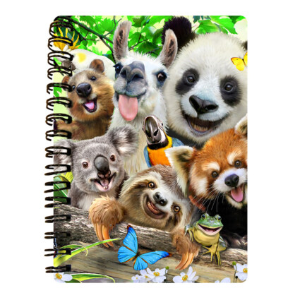 Prime 3D Notatbok – Bush gir en inspirerende skriveopplevelse med sitt livlige lentikulære 3D-motiv. Dyreelskere og små skribenter vil elske det fargerike omslaget med koala, lama, rød panda og dovendyr, gjengitt med dybde og bevegelse som vekker nysgjerrighet og kreativitet.
