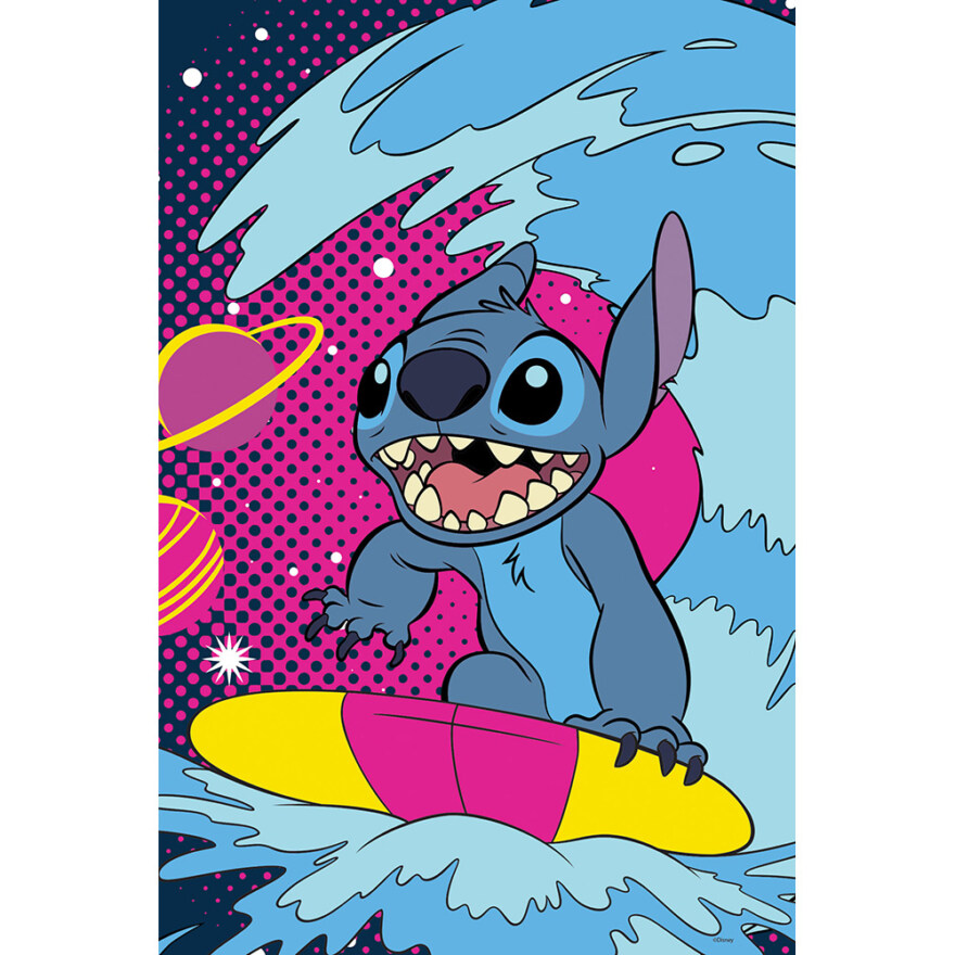 Bli med Stitch på et fargerikt eventyr med dette unike 3D-puslespillet fra Prime 3D. Med et spektakulært lentikulært motiv av Stitch som surfer blant planeter og bølger, får du en visuell opplevelse som virkelig skiller seg ut. Prime 3D-teknologien forvandler flate bilder til dybdefylte og levende motiver, og gir en spennende pusleopplevelse for både barn og voksne. Perfekt for fans av Disney og kreative utfordringer.