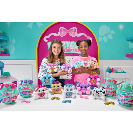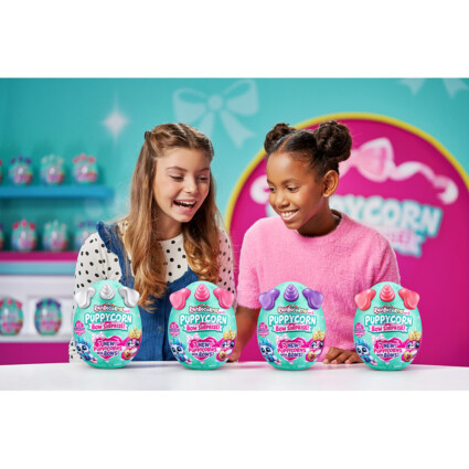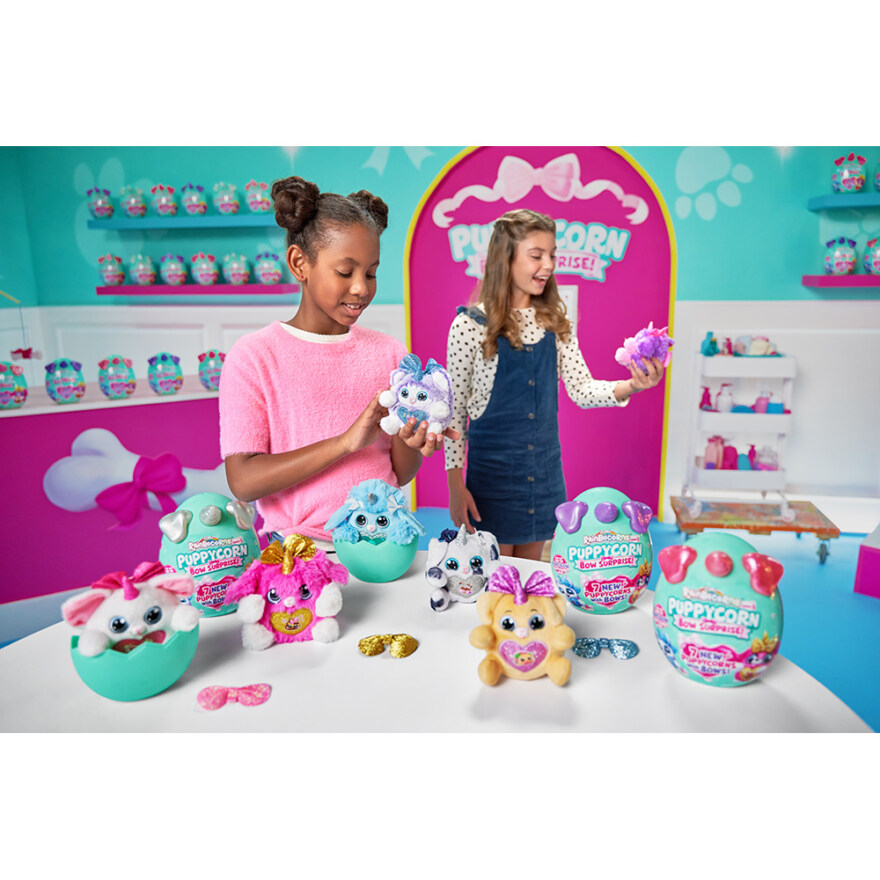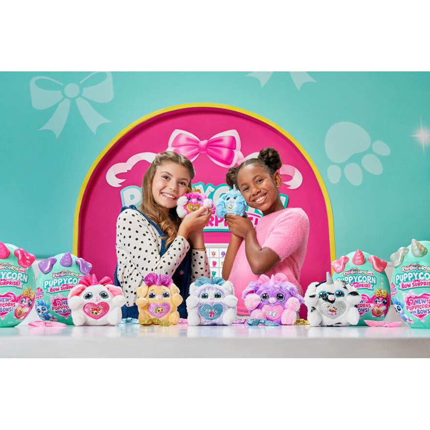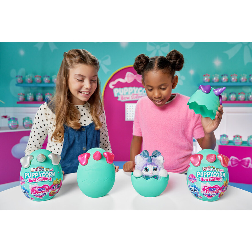 Puppycorn er tilbake med åtte helt nye valper å samle – søtere og mer kosete enn noen gang. Bruk Peel and Reveal-hjertet for å finne ut hva valpevennen din elsker, og åpne det lille Boo-Boocorn-egget for å møte mini-meg! Det er 5 overraskelser pakket inni dette RAINBOCORNS egget, så det er bare å sette i gang for å møte din nye kompis med sløyfe! Perfekt for barn som elsker søte figurer og overraskelser.