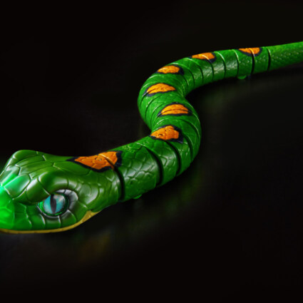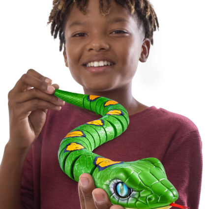Denne slangen ser ut som en helt ekte slange. Den kan også bevege på øynene og tungen går ut og inn.