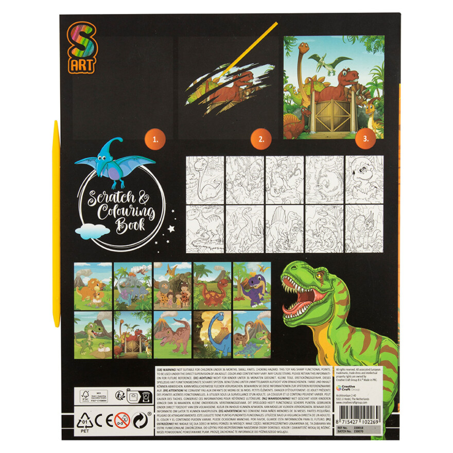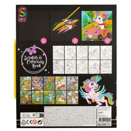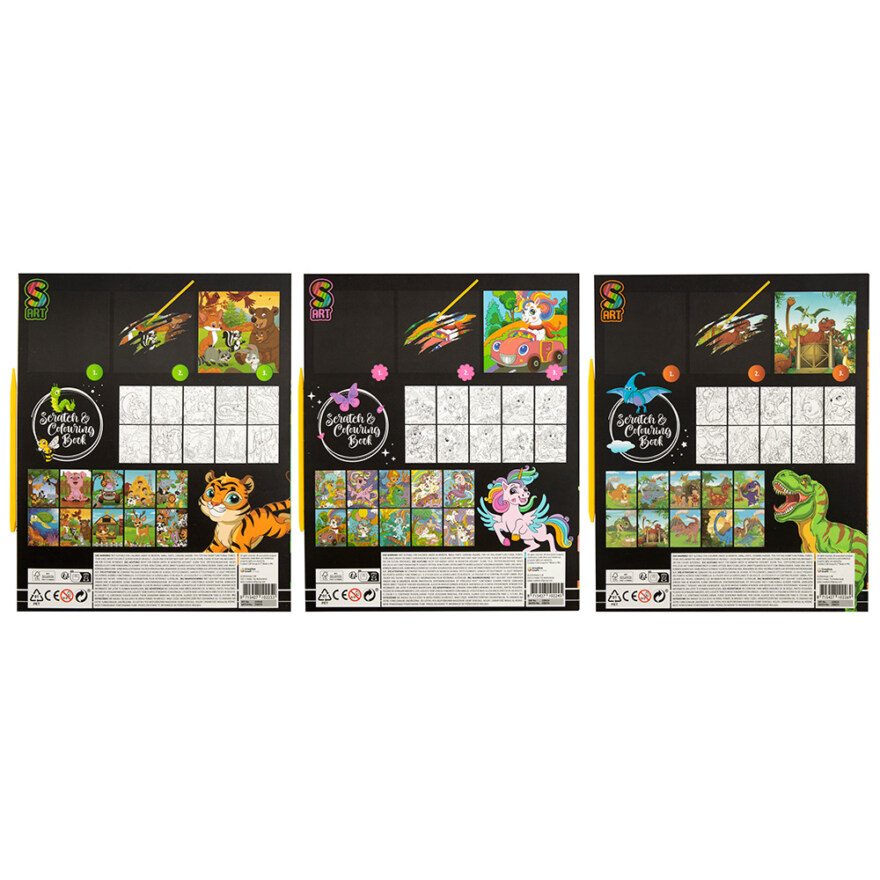 Skrap frem fargene med tilhørende redskap. Her er det hele 10 ark med flotte ulike motiv som skal skrapes frem.