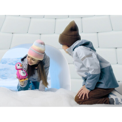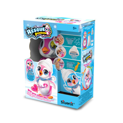 Dette er en søt interaktiv pingvin som du må ta vare på. Emballasjen tilbyr en morsom unboxing-opplevelse i tre trinn. Åpne opp boks nummer én som inneholder et magisk håndkle som utvider seg i vann. Bruk håndkleet til å tørke av pingvinen som er "skitten". Bak luke nummer to finner du et skjerf og en lue som varmer opp den skjelvende pingvinen. Når du bryr deg om pingvinen, reagerer den med lyder og bevegelser.