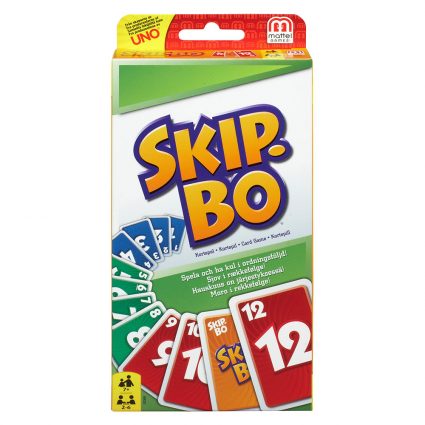 Skip-Bo er det ultimate sekvensspillet fra skaperne av UNO! Spillere må bruke kløkt og strategi for å bygge rekker av stigende tall til de er tomme for kort. Når alle spillerne har fått utdelt sine kort trekker de etter tur fra restbunken og prøver å lage bunker med stigende tall en kan lage opp til 4 ulike bunker. Har du flaks får du spesialkort som kan brukes som ethvert tall. Første spiller som får lagt ned alle sine kort vinner runden!