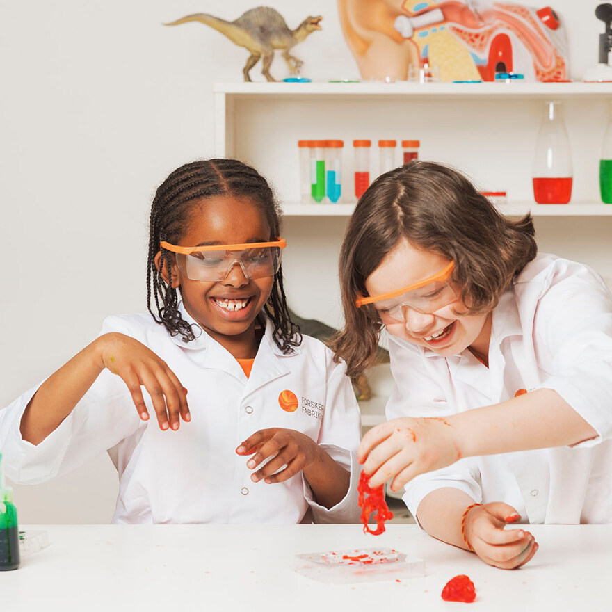 • Ekte forskerutstyr som pipetter, støpeformer, og til og med vernebriller
