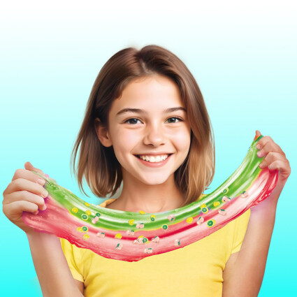 - Lag fargerik slime‑is direkte i koppen