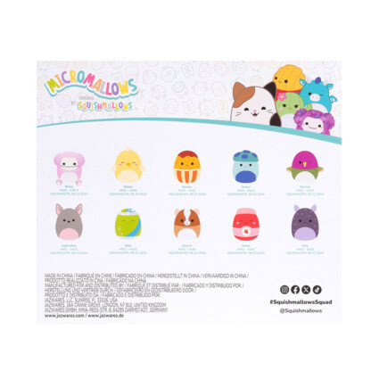 Micromallows er små, supermyke Squishmallows på 6 cm – perfekte for samling, dekorasjon og klemmevennlig lek. Denne pakken inneholder 10 populære karakterer laget av høykvalitetsmaterialer, og passer perfekt for barn fra 3 år som elsker Squishmallows-universet.