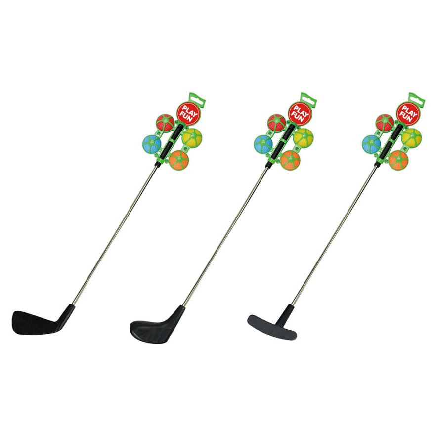Golfsett med kølle og 4 baller. Fåes i 3 varianter.