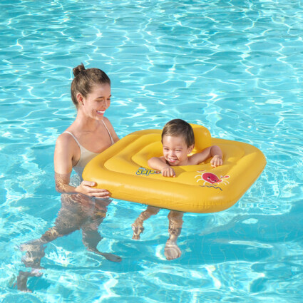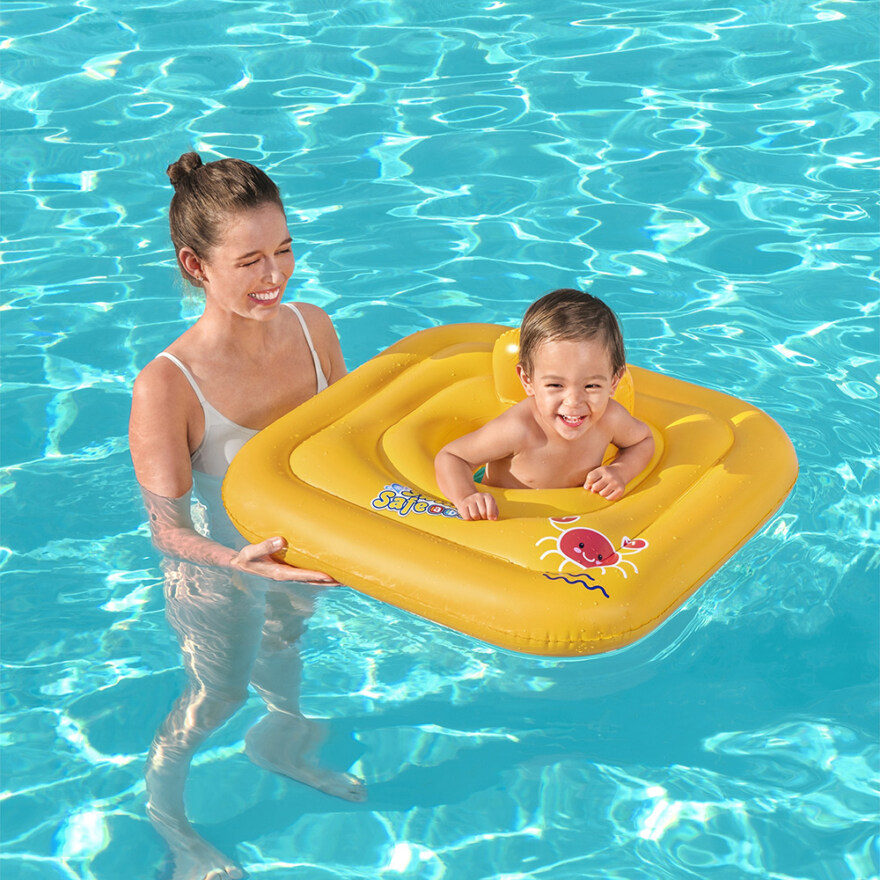 La barnet få sin første opplevelse i bassenget med Swim Safe ABC™ WonderSplash™ Square svømmesete. Svømmesetet hjelper barnet ditt å mestre det grunnleggende innen svømming og vannsikkerhet. Det lar også barnet venne seg til vannet med den ekstra komforten og støtten de trenger. Swim Safe ABC™ WonderSplash™ Float Seat er enkel å se med sin gule farge og lett å blåse opp, tømme og lagre.