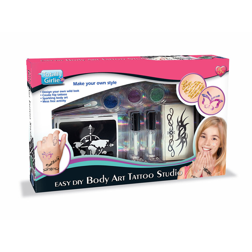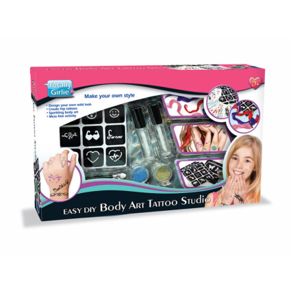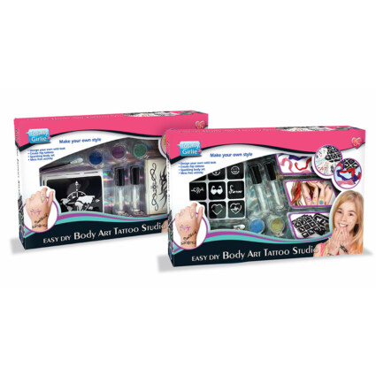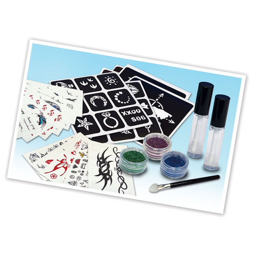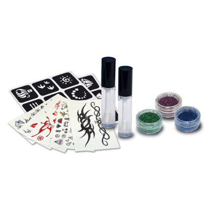 Skap dine egne unike tatoveringer med dette fantastiske tatoveringssettet! Settet inkluderer alt du trenger: tatoveringsstenciler, lim, børste, glitterpulver og midlertidige tatoveringer. Perfekt for å uttrykke din kreativitet og stil på en morsom og midlertidig måte.