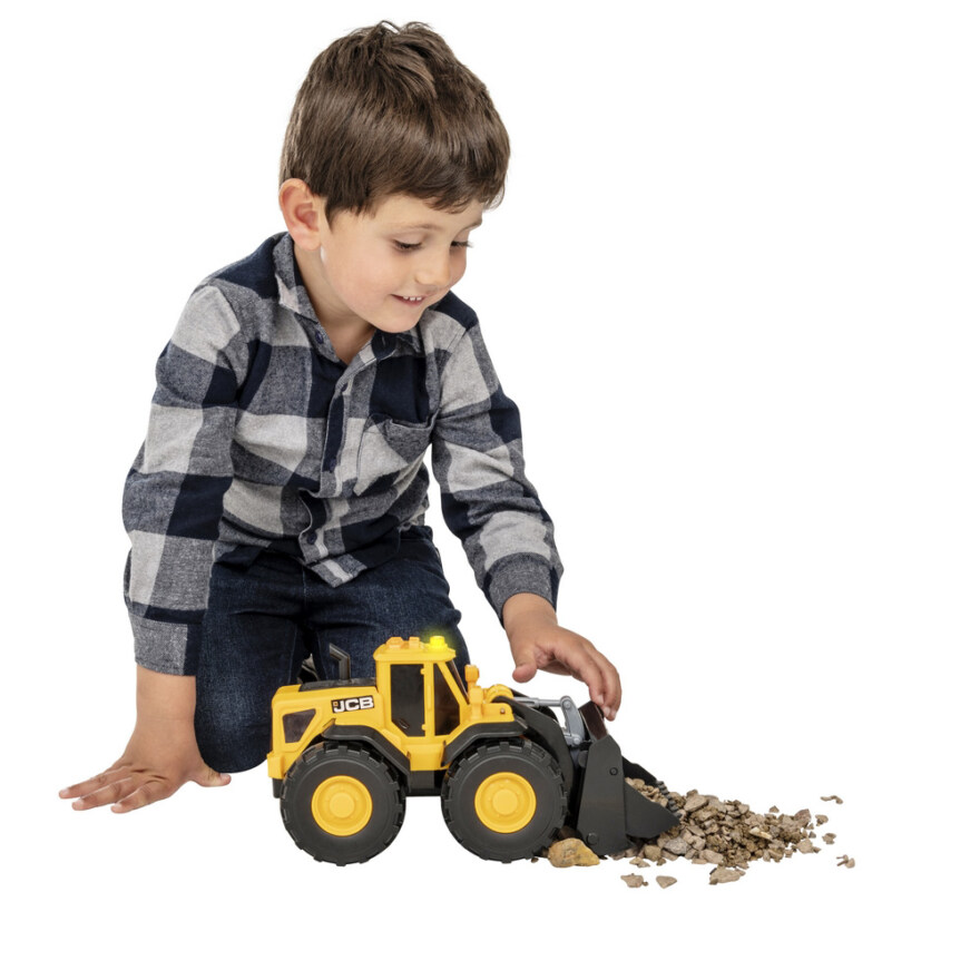 En tøff og detaljert hjullaster som kjører av seg selv og løfter grabben mens den er i bevegelse. Med både lys og realistiske lyder blir leken ekstra levende, og den robuste størrelsen gjør den perfekt for barn som elsker store arbeidsmaskiner. En solid leke som tåler mange timer med actionfylt byggeplasslek.