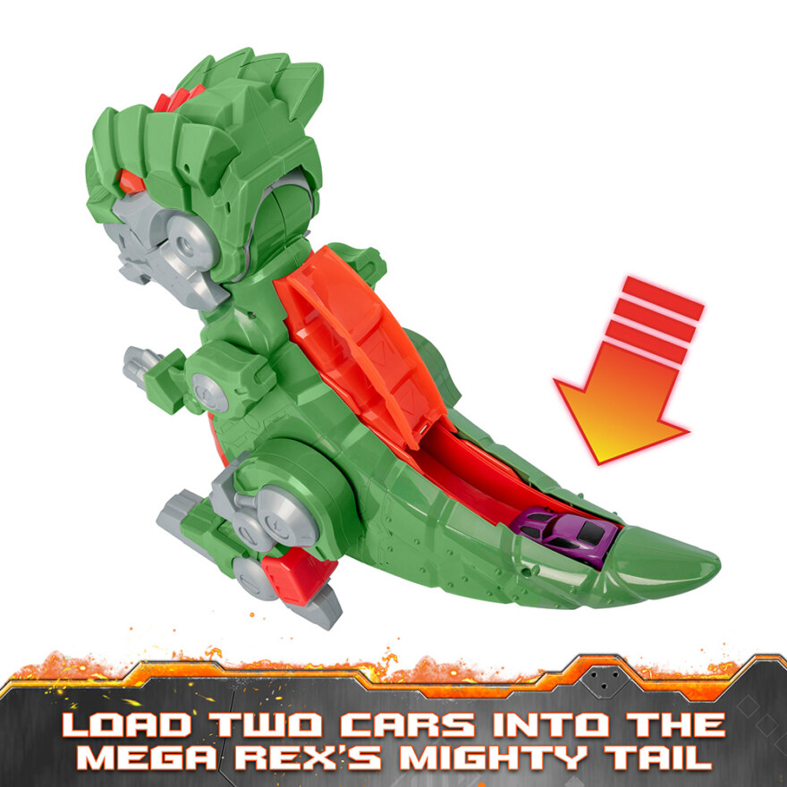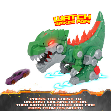 Teamsterz Robo Wreckerz Mega Rex er en brølende T-Rex med motorisert gange, lysende øyne og en spektakulær funksjon der biler skytes ut av munnen. Med en lengde på 47 cm gir den en stor og dramatisk lekeopplevelse som kombinerer dinosaurer og kjøretøy på en actionfylt måte.