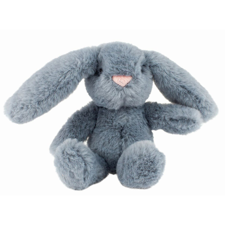 Supermyk kanin fra Tinka på 18 cm. Kaninen har en delikat blåfarge og lange fine ører som barnet liker å leke med.