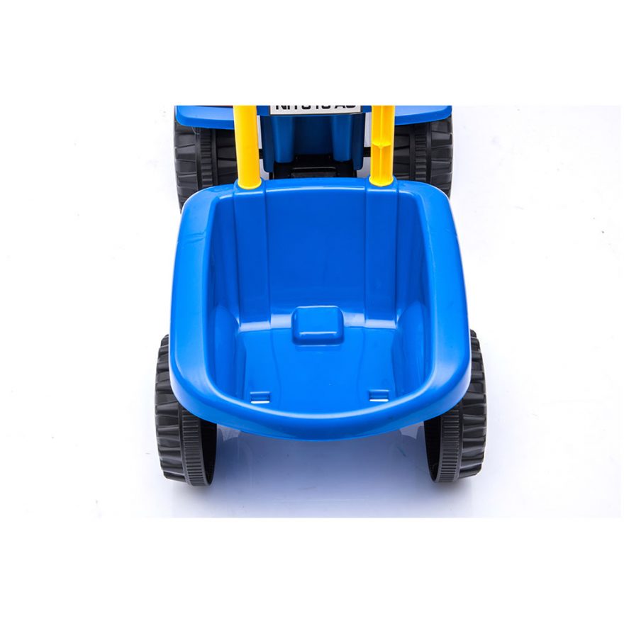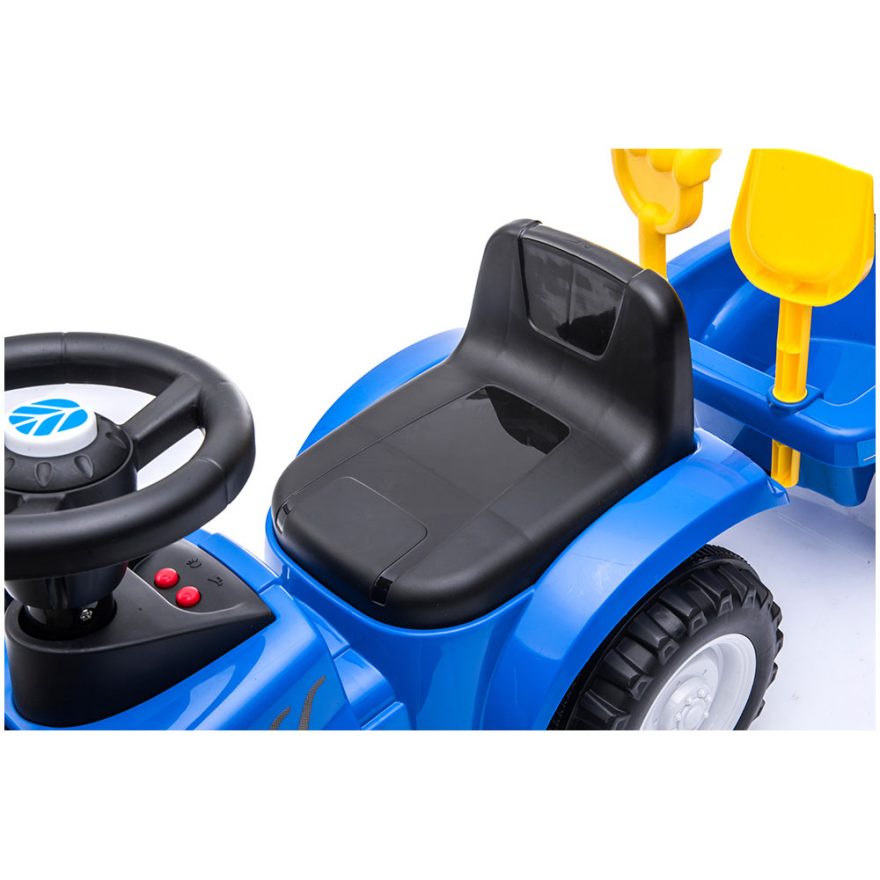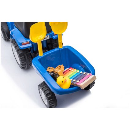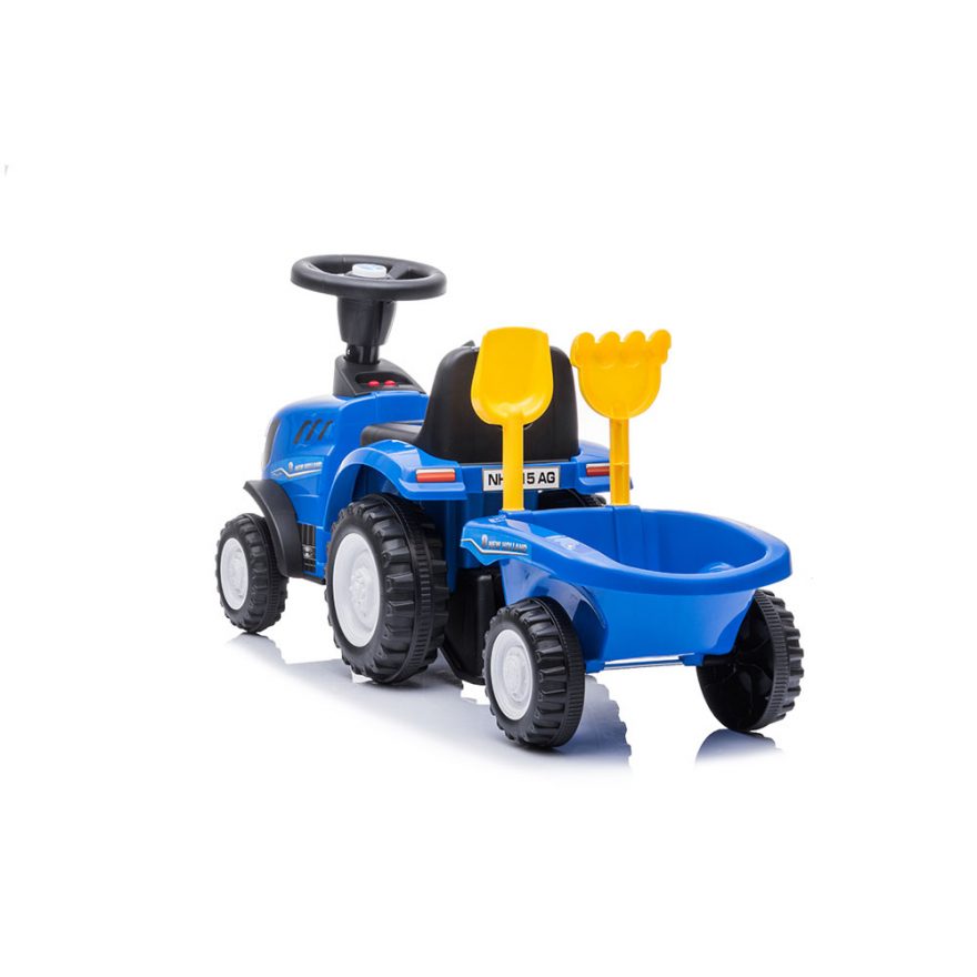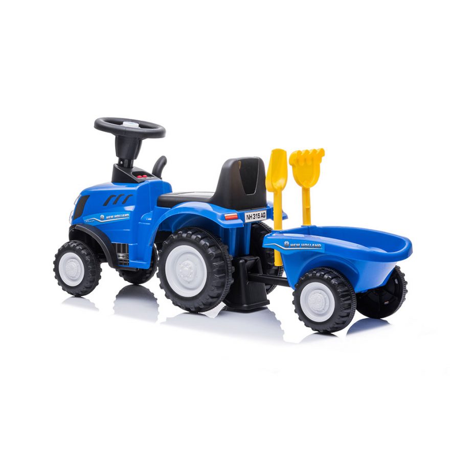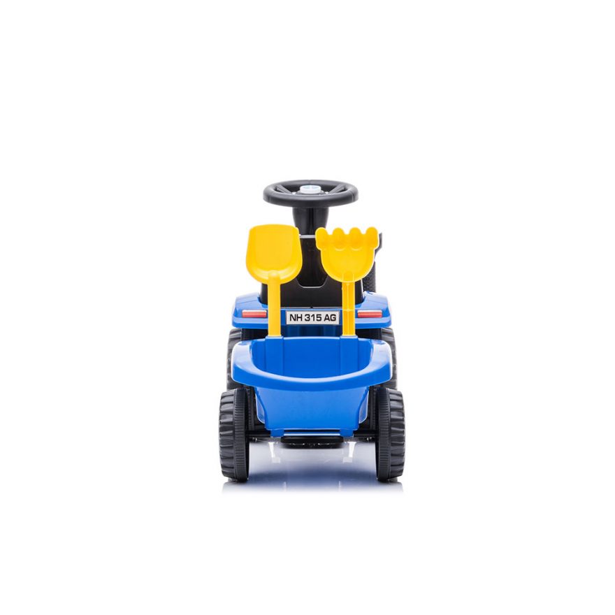 Gåbil med lyd & lys. Traktoren har tilhenger med rive og spade.