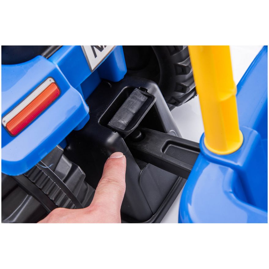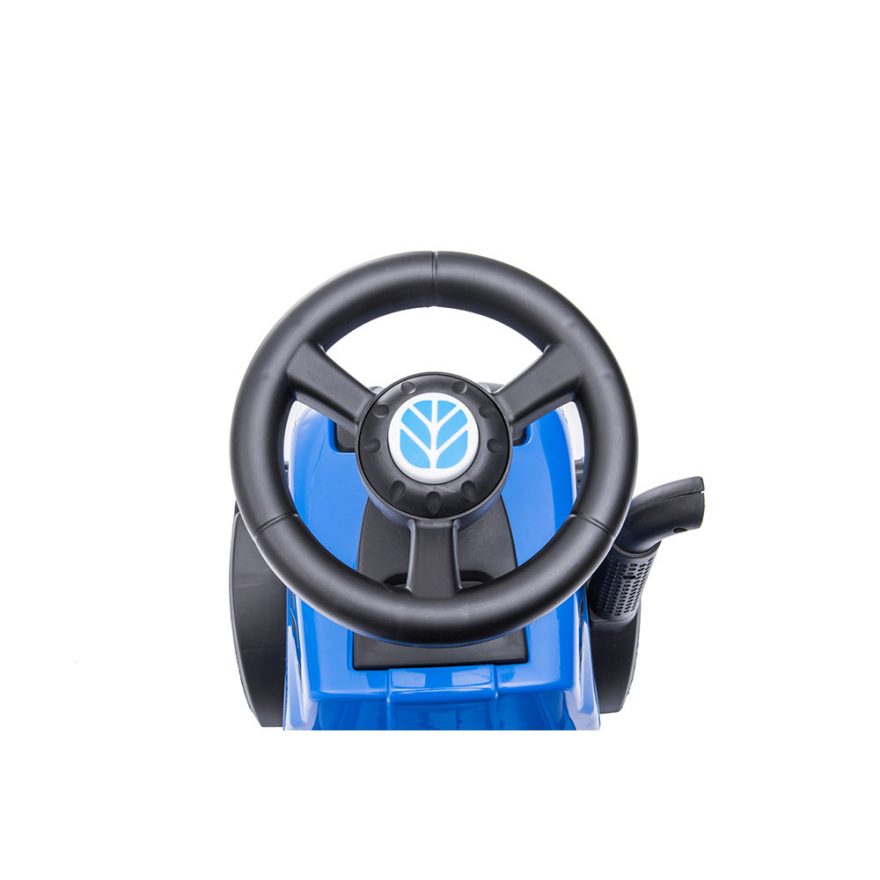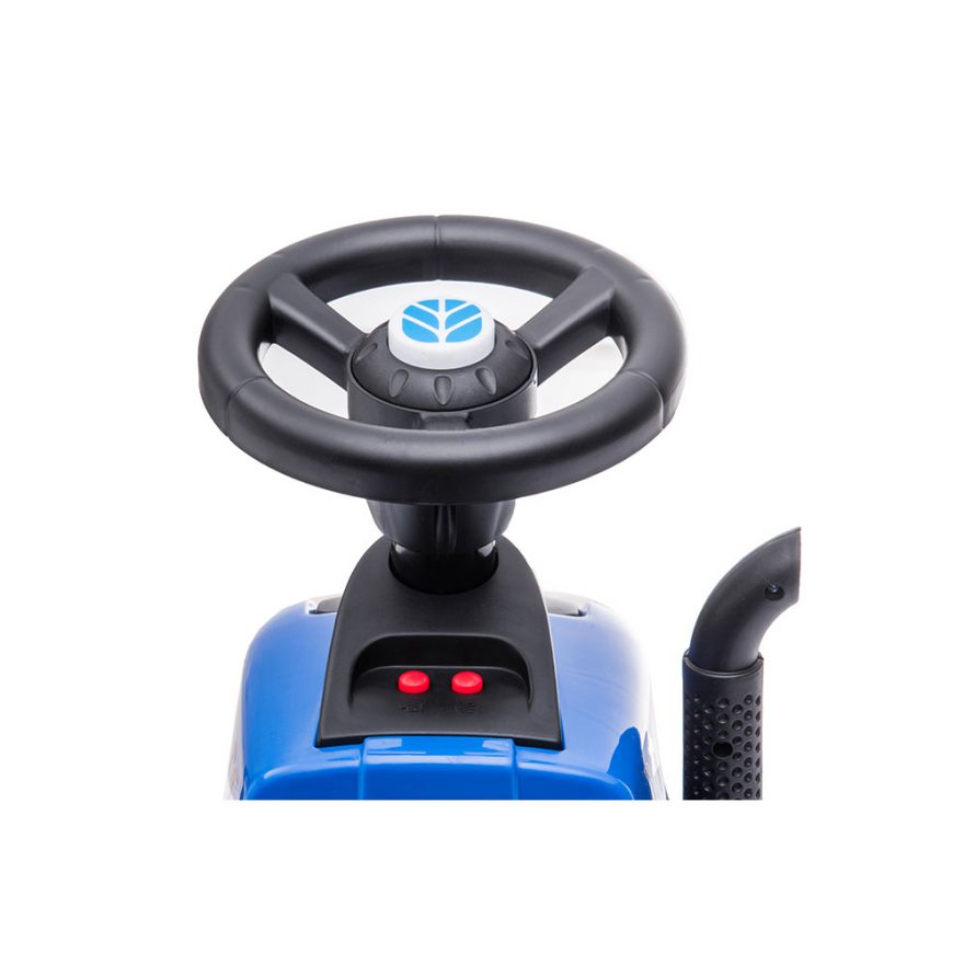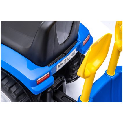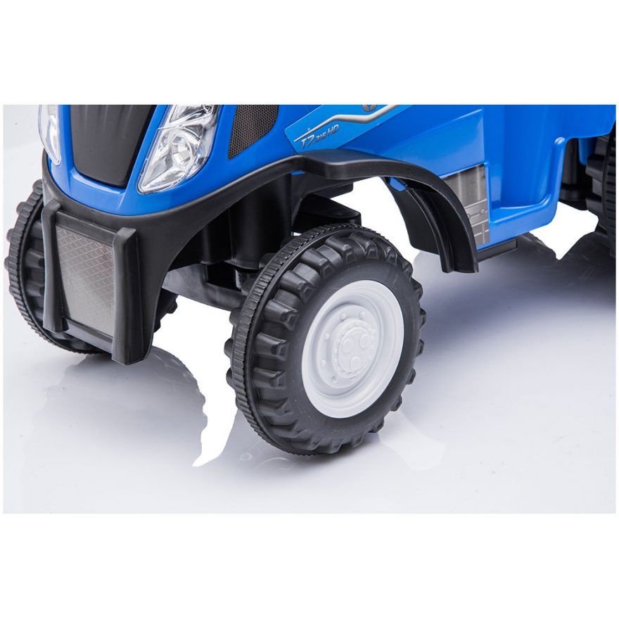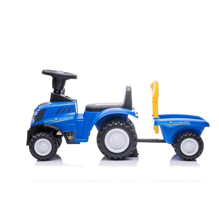 Gåbil med lyd & lys. Traktoren har tilhenger med rive og spade.