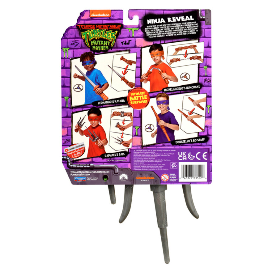 Forvandle deg selv til en av skilpaddene fra suksessfilmen Teenage Mutant Ninja Turtles Mutant Mayhem med Ninja Reveal Role Play-settet! Knyt på bandanaen, grip våpenet, og forvandle deg selv til en av de kraftige Teenage Mutant Ninja Turtles-figurene!
