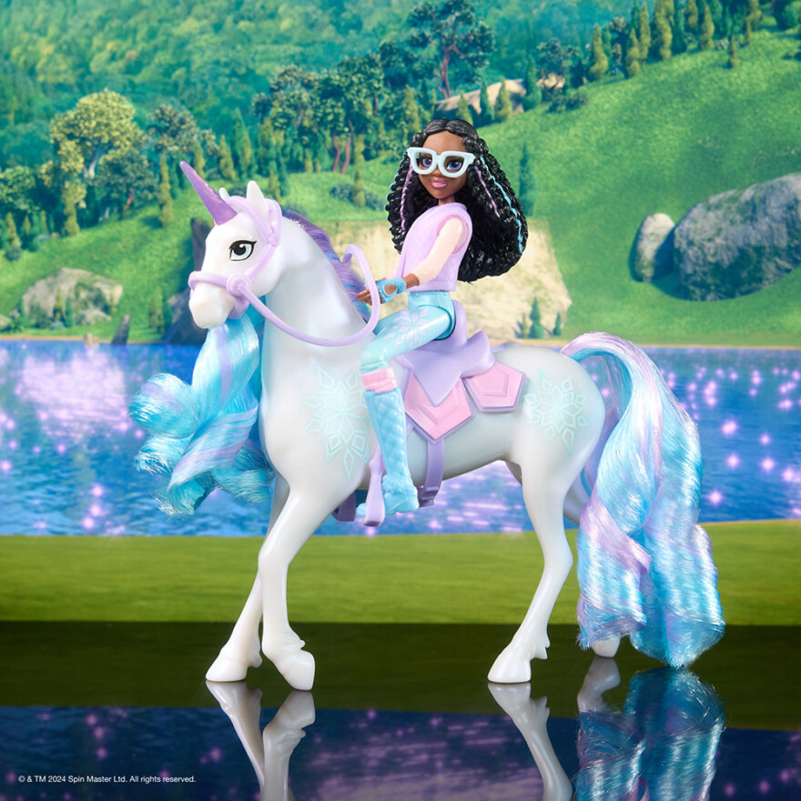 Layla & Glacier lekesettet fra Enhjørningakademiet hyller det sterke båndet mellom rytter og enhjørning. Layla har 7 bevegelige ledd, realistiske detaljer tro mot serien. Glacier komplimenterer Laylas utseende med ismagimerker, samt blå, hvit og rosa man og hale som kan børstes (børste inkludert). Med det avtakbare hodeutstyret og saltilbehøret sitter Layla lett på Glacier mens de rir ut på nye eventyr.