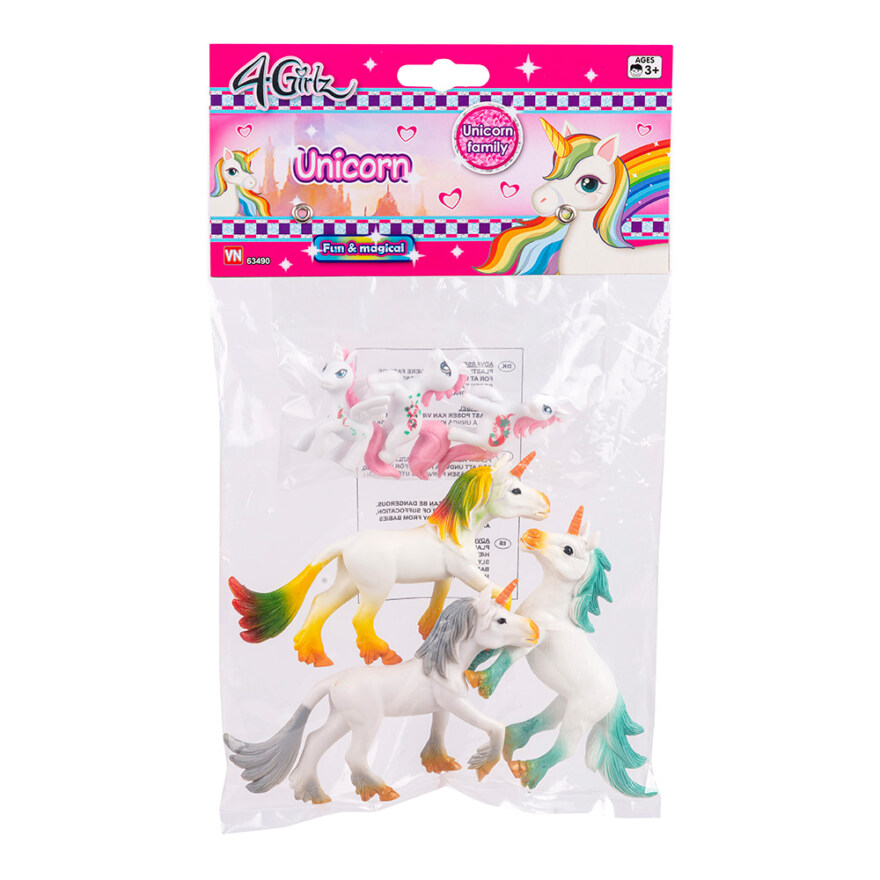 Enhjørninger i pose. 3 store og 3 små enhjørninger.