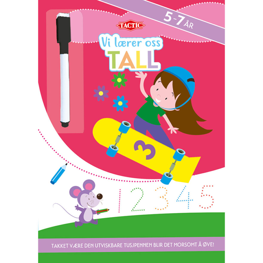 En engasjerende aktivitetsbok som gjør det morsomt for barn å lære tall og øve på å skrive. Boken inneholder varierte oppgaver som hjelper barn i alderen 5–7 år med å utvikle tallforståelse, finmotorikk og konsentrasjon. Med den medfølgende utviskbare tusjen kan barna løse oppgaver om og om igjen, noe som gir både mestring og lek i samme pakke.