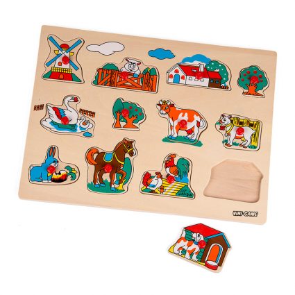 Vini trepuslespill med knotter. Dyr og bondegårdsmotiver.
