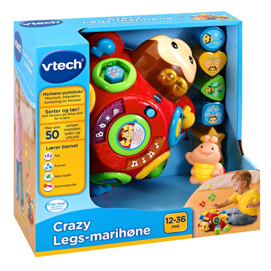 Vtech Baby Crazy Legs-Marihøne inkluderer 50+ sanger, musikk, lydeffekter og morsomme fraser på norsk.