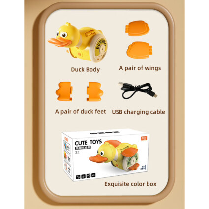 Denne sjarmerende anden gjør leken levende med realistiske bevegelser og morsomme funksjoner. Den simulerer å lete etter mat ved å senke nebbet og bevege seg rundt, og endrer automatisk retning når den møter hindringer. Anden spiller musikk som kan slås av ved behov, og den leveres med oppladbart batteri og USB-kabel for enkel lading – perfekt for små barn som elsker interaktive leker.