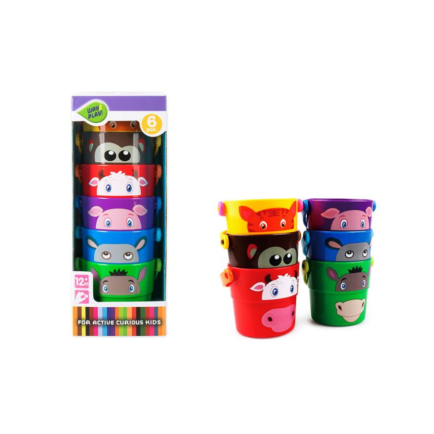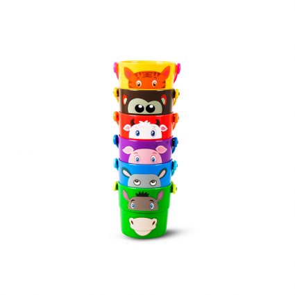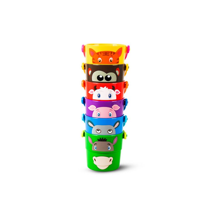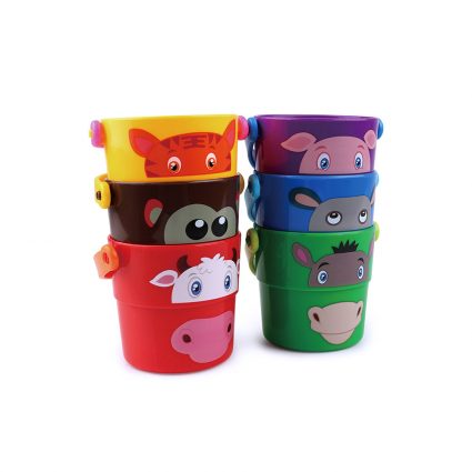 Badeleke - 6 bøtter med hank og dyremotiv.